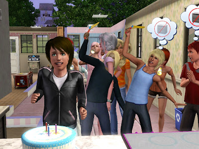 Unfortunately Dominick gained the loner trait, so as soon as he aged up, he freaked out seeing the crowd of people around him so he made a quick exit from the crowd to sit and eat cake on his own.
